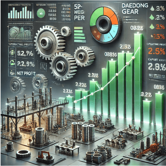 대동기어(008830)는 산업용 기계 및 로봇 관련 기어 시스템을 개발 및 제조하는 전문 기업입니다. 주로 기계 부품 및 로봇용 기어를 생산하며, 산업용 로봇 및 협동로봇(Cobots) 관련 기어 시스템을 주요 사업으로 하고 있습니다.