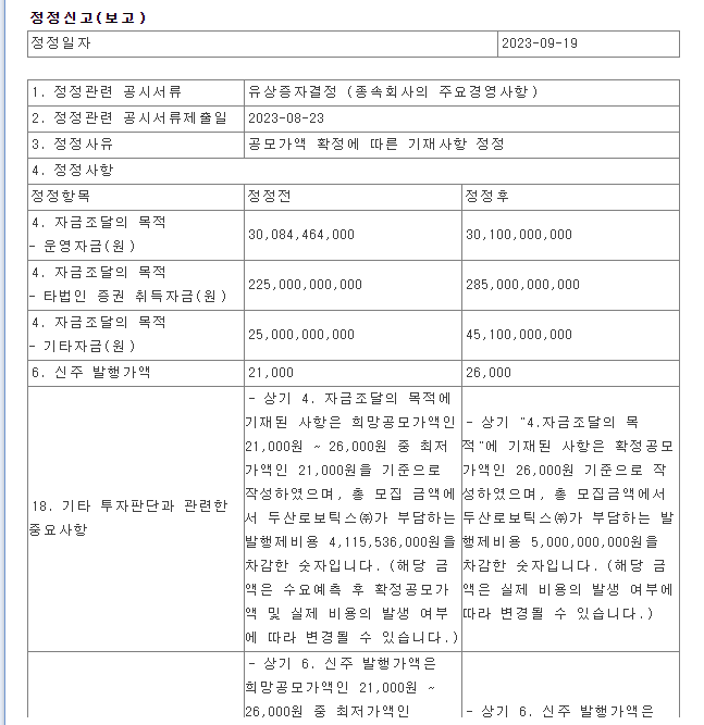 두산우의 주가는 두산로보틱스의 사업 성과와 상장 계획에 큰 영향을 받고 있습니다. 두산로보틱스는 2023년 9월부터 국내 기관을 대상으로 수요 예측에 나섰으며, 희망 공모가는 2만1천원에서 2만6천원입니다. 또한, 두산로보틱스는 연간 영업이익의 흑자 전환 시기가 2026년으로 예상되며, 이후 몸값은 1조9천억원에 이를 것으로 전망됩니다.