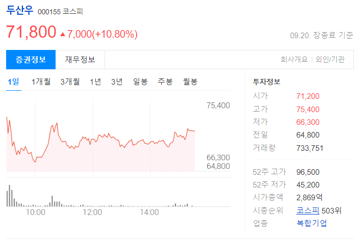 두산우의 현재주가는 72,100원으로, 전일 대비 11.27% 상승하였습니다. 두산우의 시가총액은 1조 4천억원으로, 코스피 시가총액 순위에서 94위를 차지하고 있습니다. 두산우의 주가는 최근에 두산에너빌리티의 회사채 발행 소식에 영향을 받았습니다.