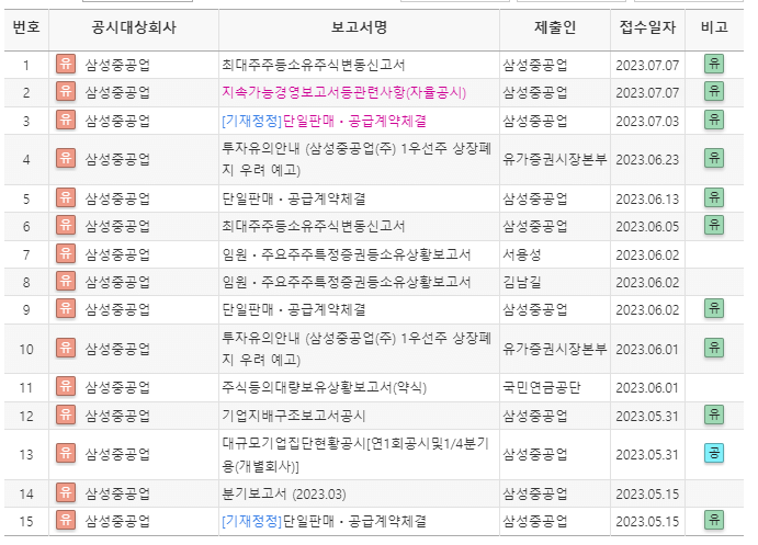 삼성중공업은 2023년 7월 12일, 버뮤다지역 선주로부터 LNG운반선 4척을 수주했다는 공시를 내놓았어요. 삼성중공업은 2023년 7월 9일, 유상증자의 실시결과를 공시했어요. 총 발행주식수는 1,760,000,000주로, 신주발행가액은 6,820원이며, 유상증자로 조달된 자금은 채무상환 및 운영자금에 사용될 예정이에요.