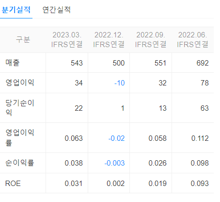 - 매출액: 510억원 (전분기 대비 9.4% 상승)