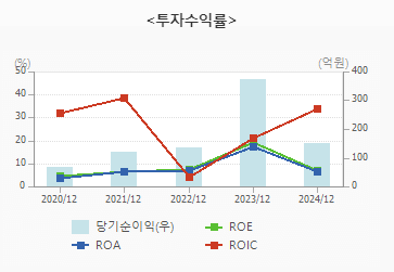 슈프리마에이치큐의 매출총이익률은 2020년부터 2023년까지 39%에서 35.30%로 하락했으며, 2023년에는 38.23%로 소폭 회복되었습니다. 영업이익률은 2020년부터 2023년까지 -13.13%에서 12.26%로 개선되었고, 순이익률은 -4.38%에서 75.68%로 큰 폭의 개선을 보였습니다. ROE(자기자본이익률)는 2023년 19.45%, ROA(자산이익률)는 17.28%, ROIC(투하자본수익률)은 21.23%로 매우 우수한 수치를 기록하였습니다.