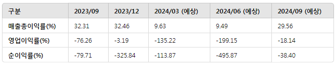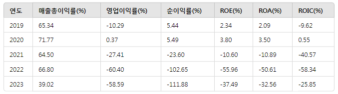 - 영업이익 및 순이익 적자 지속 → 재무 건전성 우려