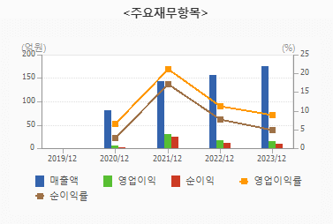 위 표는 아스테라시스(450950)의 연간 실적을 나타냅니다. 2023년에는 매출과 순이익이 상승했으며, 영업이익률과 순이익률이 지난해 대비 다소 하락했으나 여전히 양호한 실적을 보였습니다.