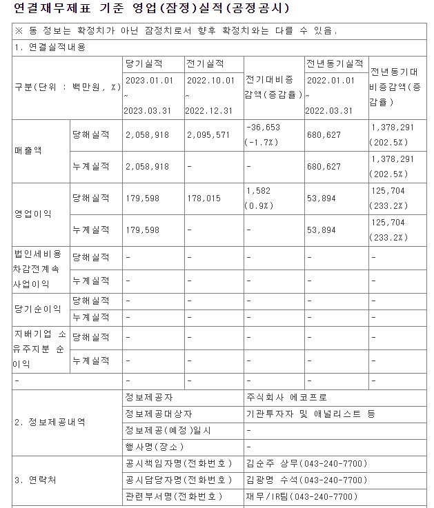 에코프로 최근 실적