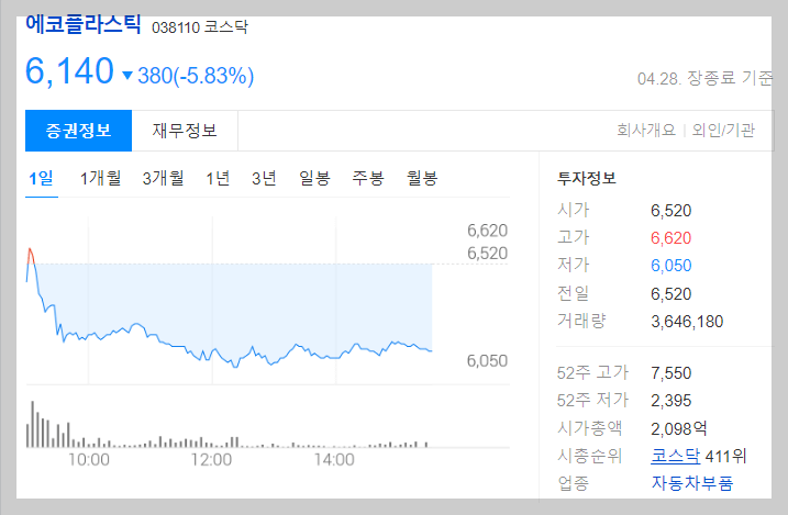 에코플라스틱 주식의 1년간 최저가와 최고가의 차이는 약 2배에 달합니다. 에코플라스틱은 외형확대로 이익 성장세를 유지하고 있습니다. 현재 에코플라스틱 주식의 시가총액 순위는 코스닥 605위입니다.