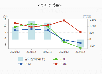 2023년 4분기 실적에서는 매출총이익률 23.21%, 영업이익률 6.50%, 순이익률 -10.90%로 적자를 기록했습니다. EBITDA 마진율 은 N/A 였으며, ROE 는 -2.48% , ROA 는 -1.00% 로 여전히 부진한 실적을 보였습니다. ROIC 는 2.19% 로 전분기 대비 상승했으나, 여전히 낮은 수준을 유지하고 있습니다.