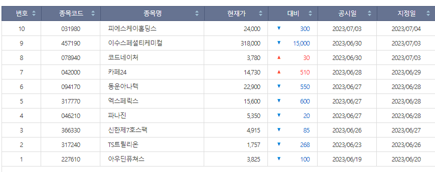 | 공모주 가격제한폭 변경사항 정리 (0) | 2023.07.06 |