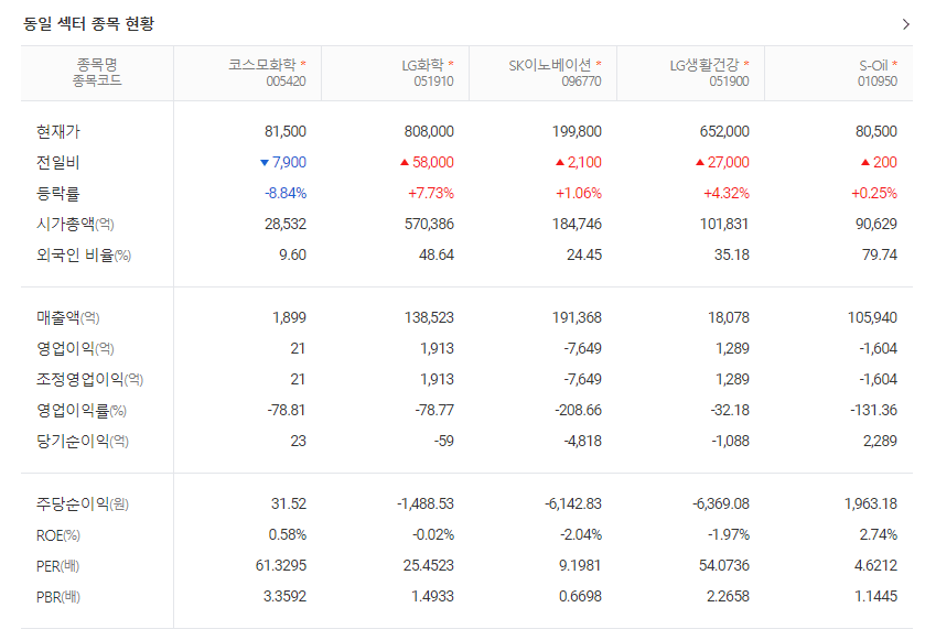 코스모화학 최근 실적