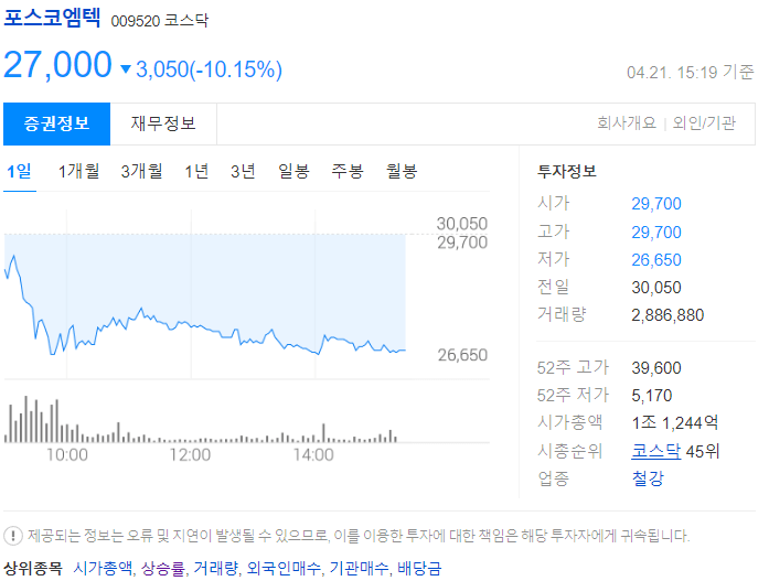 하지만 최근 뉴스를 확인해 보면 포스코 엠텍은 포스코 그룹의 계열사로 리튬사업과는 무관한 회사라고 밝혔습니다. 뉴스나오기전에 포스코엠텍은 이차전지 테마와 합병 루머가 항상 나돌아, 매수세의 주가가 최고점을 지속적으로 갱신하였습니다. 이차전지 아르헨티나 리튬은 포스코엠텍과 무관, 포스코 홀딩스 스룹합병도 사실무근인 점을 알고 투자하여야 합니다.