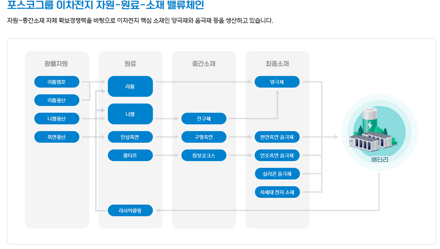 게다가, 포스코홀딩스는 친환경미래소재분야인 EV배터리소재 및 수소사업 등으로 사업을 확장하고 있습니다. 리튬, 니켈, 양극재, 음극재, 리사이클링 등의 분야에서 포스코케미칼, 포스코아르헨티나 등의 계열사를 운영하고 있습니다