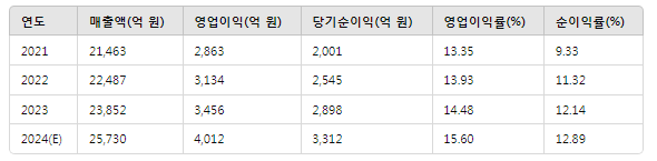 KAI는 최근 몇 년간 실적 개선을 이어가고 있으며, 2024년에도 성장세가 지속될 것으로 보입니다.