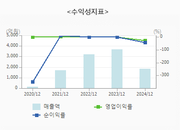 * PER (주가수익비율)은 N/A로, 적자 상태로 인해 주가수익비율을 계산할 수 없습니다. 이는 회사가 아직 이익을 내지 못하고 있음을 의미합니다.