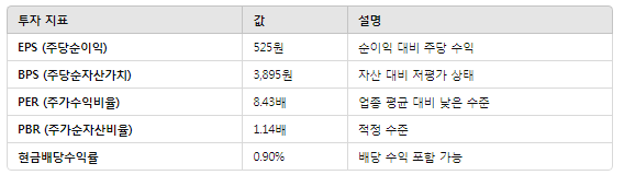 - PER 8.43배 → 상대적으로 저평가된 투자 매력